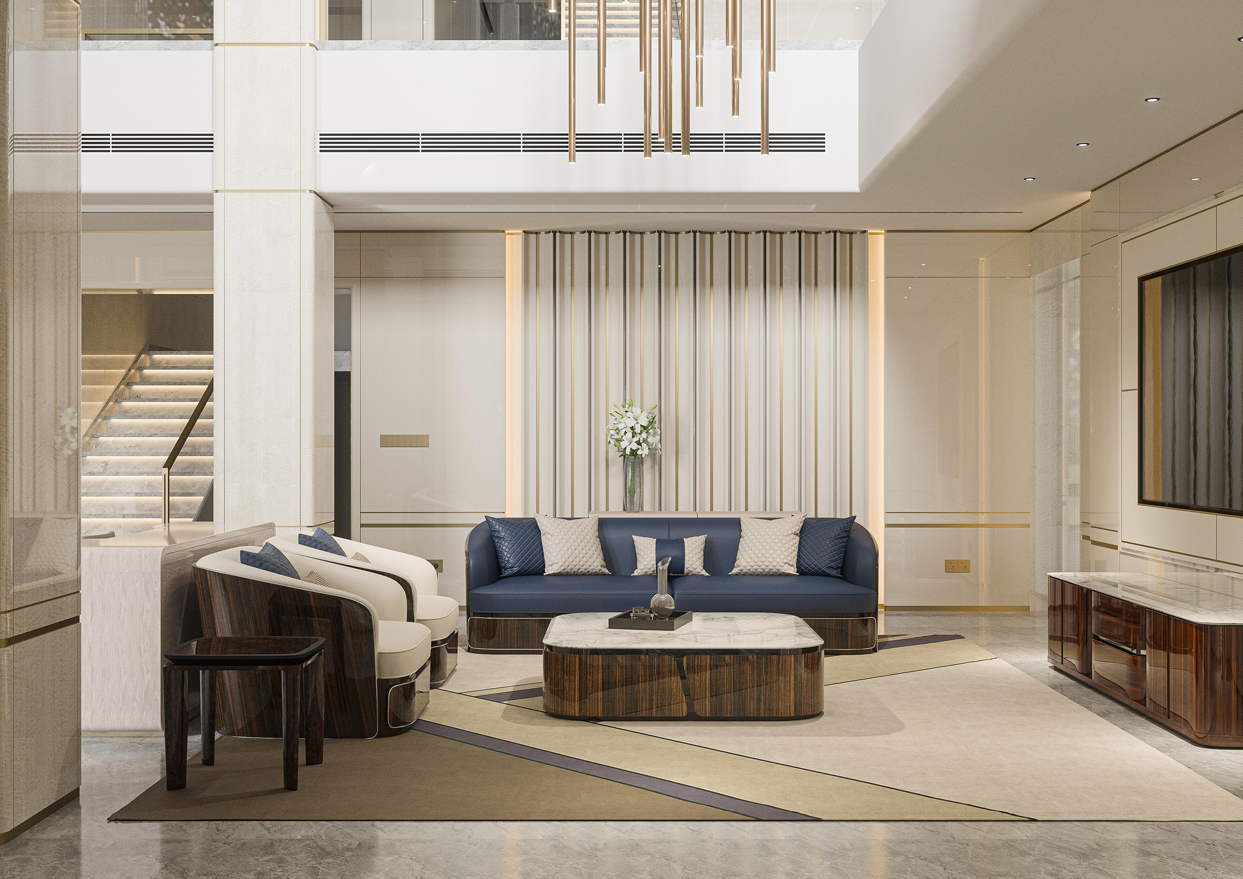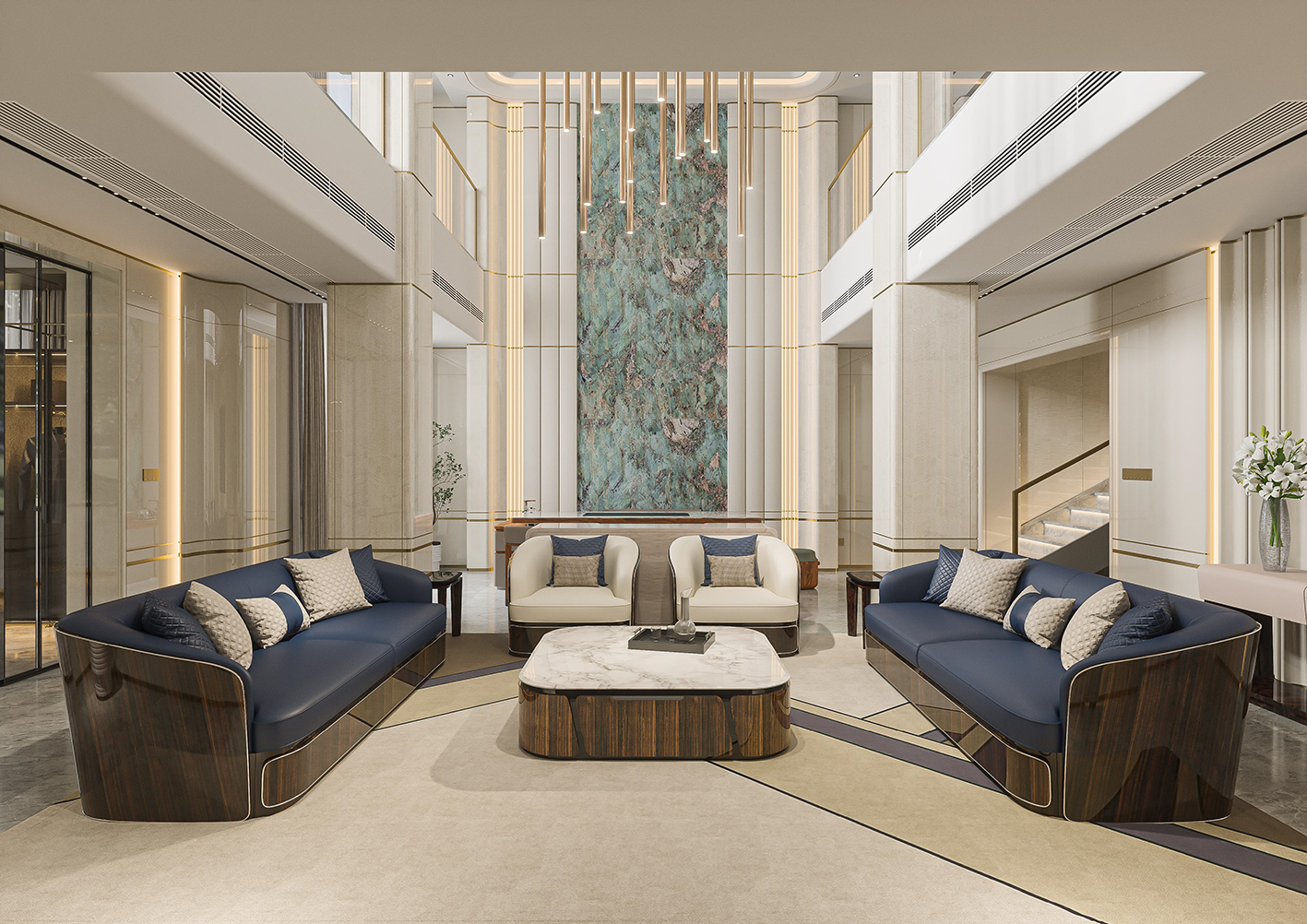 進(jìn)入一層大廳,穩(wěn)重和現(xiàn)代感兼具的會(huì)客空間展現(xiàn)眼前。